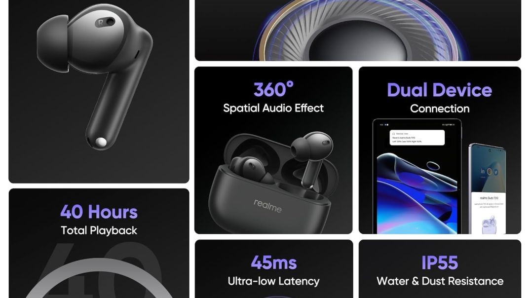 - 46dB Hybrid Noise Cancellation | 45ms Ultra Low Latency 12.4mm Dynamic Bass Driver 40 Hours Total Playback| Fast Charge :10 Min of Charge =5Hrs Play Back IP55 Water & Dust Resistant Bluetooth V5.4 Dual Device Connectivity